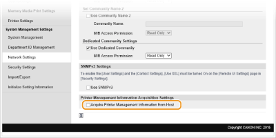 في حالة عدم استخدام SNMPv1إذا تم تعطيل كلا إصداري SNMP، تصبح بعض وظائف الجهاز غير متوفرة، مثل الحصول على معلومات الجهاز عن طريق برنامج تشغيل الطابعة.