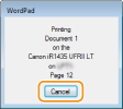 لإلغاء الطباعة، انقر فوق [إلغاء] عندما يتم عرض الشاشة الموضحة أعلاه. بعد اختفاء الشاشة أو إذا لم يتم عرضها، فستتمكن من إلغاء الطباعة بطرق أخرى. إلغاء المطبوعات