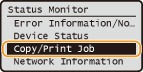 .![]() <Copy/Print Job Status>لعرض قائمة بالمستندات التي تتم معالجتها، أو يتم نسخها، أو قيد انتظار المعالجة.