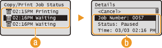 حدد <Job Status>, واضغط على