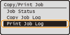 حدد <Print Job Log>, واضغط على