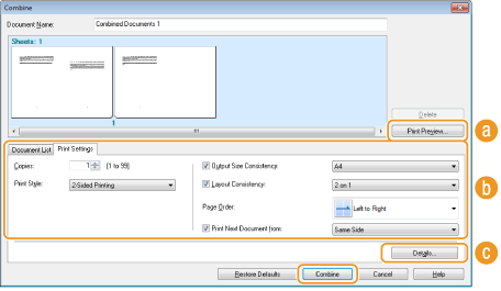 باستخدام Canon PageComposer، يمكنك دمج مستندات متعددة في مهمة طباعة واحدة وطباعة المهمة باستخدام إعدادات طباعة محددة. وتمكنك هذه الوظيفة، على سبيل المثال، من دمج المستندات التي تم إعدادها بواسطة تطبيقات مختلفة وطباعة جميع الصفحات في نفس حجم الورق.