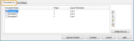 انقر فوق علامة تبويب [قائمة المستند] لعرض المستندات المُضافة في الخطوات من 1 إلى 4. يمكنك حذف المستندات بتحديدها في القائمة والنقر على [حذف من القائمة].