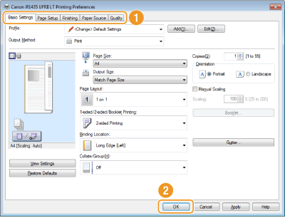 قم بتغيير الإعدادات التي تظهر على شاشة إعداد الطباعة، ثم انقر فوق [موافق].