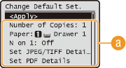 <Memory Media Print Settings>    <Change Default Settings>    حدد الإعداد    غيّر القيم الافتراضية للعنصر المُحدد  <Apply>
