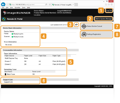 لتسجيل الخروج من Remote UI (واجهة المستخدم البعيدة). سيتم عرض صفحة تسجيل الدخول.