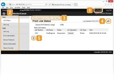 يعرض حالة مستندات الطباعة الحالية وتاريخ طباعة المستندات أو نسخها. يمكنك أيضًا التحقق من حالة الجهاز.