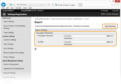 أدخِل كلمة المرور المُشفَّرة ثم انقر فوق [Start Exporting].