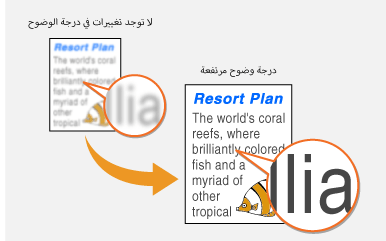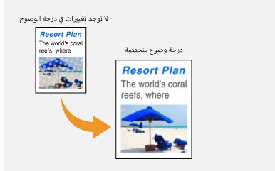 يمكنك ضبط وضوح الصورة الممسوحة. قم بزيادة درجة الوضوح لجعل الخطوط والنصوص الباهتة واضحة، أو قم بتقليل درجة الوضوح لتحسين مظهر صور المجلات.