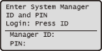 إذا حاولت الوصول إلى<Network Settings> أو <System Management Settings>عند تمكين معرف مدير النظام فقط، يتم عرض شاشة تسجيل الدخول التالية: