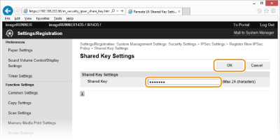 أدخل ما يصل إلى ٢٤ حرفًا أبجديًا رقميًا للمفتاح المشترك مسبقًا ثم انقر فوق [OK].