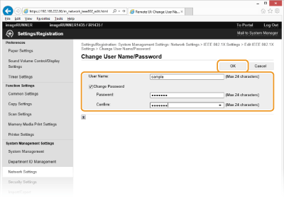 قم بتعيين اسم المستخدم/كلمة المرور ثم انقر فوق [OK].