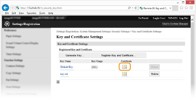 انقر فوق [Security Settings]  [Key and Certificate Settings (لأزواج المفاتيح) [CA Certificate Settings] أو لشهادات المرجع المصدق).