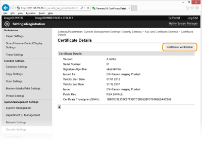 انقر فوق [Certificate Verification].