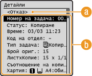 Броят на копията, настройките и други детайли се извеждат на екрана. Ако искате само да проверите данните, без да анулирате копирането, натиснете