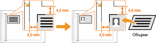 Можете да използвате <Копиране на ID карта>, за да копирате предната и задната страна на карта върху една и съща страница. Тази функция е полезна при копиране на шофьорска книжка или лична карта.