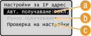 ![]() Ако е изведено <Вкл.>, изберете <Авт. получаване>