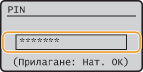 Въведете ПИН код, състоящ се от до седем цифри. Въведеният ПИН код е показан чрез символи.