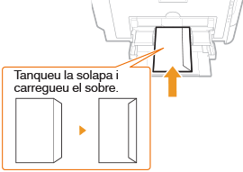 Assegureu-vos d'aplanar les curvatures dels sobres abans de carregar-los. També heu de parar atenció amb l'orientació dels sobres i comprovar quina cara està cap amunt. Carregueu els sobres a la safata multiús. Els sobres no es poden carregar al calaix de paper.