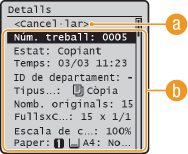 Apareixen el nombre de còpies, les opcions i altres detalls. Si només voleu comprovar els detalls sense cancel·lar la còpia, premeu