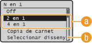 , però si l'augmenteu és possible que no es copiïn les vores del document.<2 en 1>/<4 en 1> no està disponible quan utilitzeu <Esborrar marc> o <Còpia de carnet>.