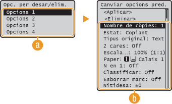 Seleccioneu <Opcions 1> a <Opcions 4>