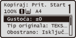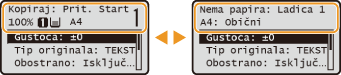 , prikazuje se glavni zaslon odabrane funkcije. Glavni je zaslon za kopiranje prikazan ispod kao primjer.