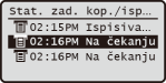 Prikazuje trenutni status odabrane stavke. Zaslon <Stat. zad. kop./ispisa> prikazan ispod kao primjer.