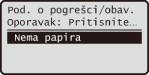 Poruke se prikazuju pri vrhu zaslona ako nema papira ili je razina tonera niska. Prikaz se mijenja iz prikaza običnog zaslona u prikaz poruke.
