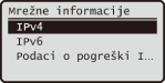 Prikazuje mrežne postavke, npr. IP adresu uređaja.