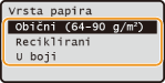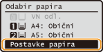 Ako se prikaže zaslon <Odabir papira> ilustriran dolje, upotrijebite
