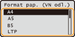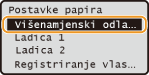 Nakon što registrirate standardne postavke ne prikazuje se zaslon za postavljanje papira ako je papir umetnut, a uvijek se koristi ista postavka. Ako umetnete drugi format ili vrstu papira bez promjene postavki papira, uređaj neće pravilno ispisivati. Da biste izbjegli taj problem, onemogućite standardnu postavku tako da u 3. koraku odaberete <Isključeno>, a zatim umetnete papir.