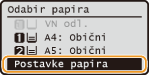 za odabir <Postavke papira> i pritisnite