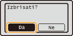 Odaberite <Izbriši> a zatim pritisnite