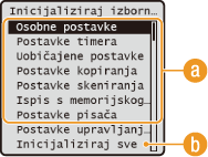 Za upute o tome kako vratiti postavke za <Mrežne postavke> i <Postavke upravljanja sustavom> pogledajte Inicijaliziranje postavki upravljanja sustavom.