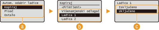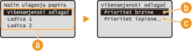 ). Automatski odabir ladice uvijek je omogućen za ispis na papiru za čije se ulaganje koristi višenamjenska ladica.