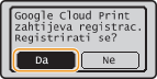 Uređaj možete registrirati i s mobilnog uređaja ili iz preglednika Google Chrome*. Na zaslonu uređaja prije dovršetka registracije prikazat će se zaslon za potvrdu u nastavku. Pritisnite <Da> za dovršetak registracije.