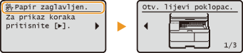 Ako se papir zaglavi, na zaslonu će se pojaviti poruka <Papir zaglavljen.>. Pritisnite
