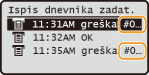 Troznamenkasti broj (kôd pogreške) prikazat će se na zaslonu <Nadzor statusa> u slučaju da dođe do greške, npr. ako ispisivanje nije moguće ili je memorija popunjena. Provjerite donje informacije za pojedinosti o uzrocima i rješenjima za svaki kôd pogreške.