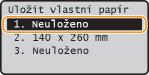 Vyberte uloženou velikost, kterou chcete odstranit, a stiskněte tlačítko