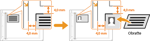 Pomocí funkce <Kopie průkazu> lze zkopírovat přední i zadní stranu průkazu na jednu stránku listu. Tato funkce je užitečná při kopírování řidičského či občanského průkazu.