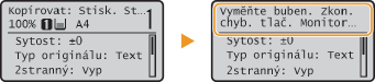 <Vyměňte buben. Zkontr. chybu tl. Monit. stavu>