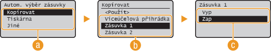 ). Automatický výběr zásuvek je vždy zapnutý pro tisk na papír podávaný z víceúčelové přihrádky.