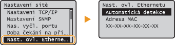Pokud zařízení připojíte k přepínači nebo mostu, může dojít k chybě připojení, přestože je IP adresa nakonfigurována správně. Tento problém lze vyřešit nastavením určitého intervalu před zahájením komunikace zařízení. Nastavení čekací doby pro připojení k síti