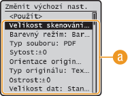 . Pokud často používaná nastavení uložíte jako výchozí nastavení, nebudete muset konfigurovat stejná nastavení při každém skenování dokumentů.|