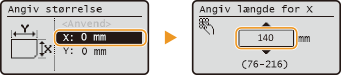 .Indtast længden på <X>-siden med
