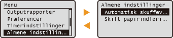 Sådan ændrer du den skærm, der vises automatisk, når maskinen har været inaktiv i en angiven tidsperiode: