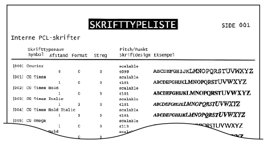 Du kan printe en liste med skrifttyper, der er tilgængelige i PCL-status.