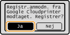 Du kan også registrere maskinen fra en mobilenhed eller Google Chrome*. Maskinens display viser følgende bekræftelsesskærm, før registreringen færdiggøres. Tryk på <Ja> for at afslutte proceduren.