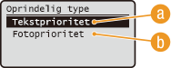 til at vælge <Fotoprioritet> eller <Tekstprioritet>, og tryk på